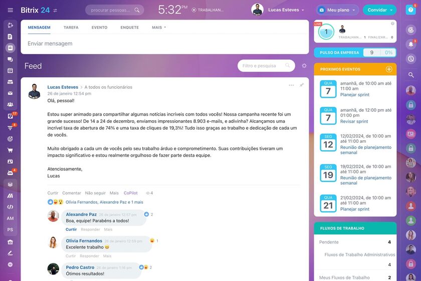 Um outro aspeto essencial nesse contexto é a comunicação. Muitas vezes, a falta de fluidez entre departamentos atrasa projetos e compromete resultados. Com ferramentas integradas de chat, videoconferência, intranet, e gestão colaborativa de tarefas, o Bitrix24 promove um ambiente de trabalho mais coeso. Mesmo em equipas remotas ou híbridas, a proximidade mantém-se, e os fluxos de informação tornam-se mais simples e transparentes.