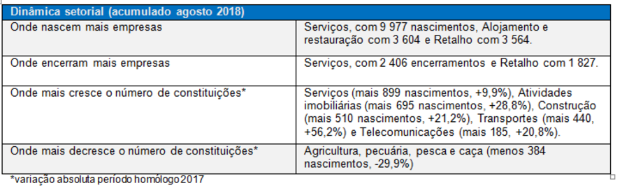Nos primeiros oito meses do ano encerraram 10.295 empresas e outras organizações, o que representa um aumento de 17,3% face ao mesmo período do ano passado e que é mais forte do que o nascimento de empresas. Contudo, se for tido em conta um período mais alargado de 12 meses, a criação de empresas (+ 10,8%) cresce a um ritmo mais rápido do que os encerramentos (+3%).