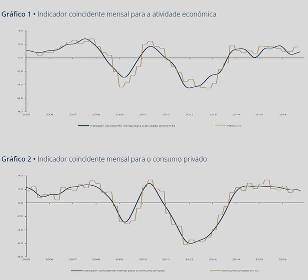 De acordo com o Banco de Portugal, o indicador coincidente mensal para o consumo privado mantém-se estável desde Maio, após a diminuição observada no início de 2016. A taxa de crescimento registada em Outubro foi de 1,9%, igualando o registado nos cinco meses anteriores.