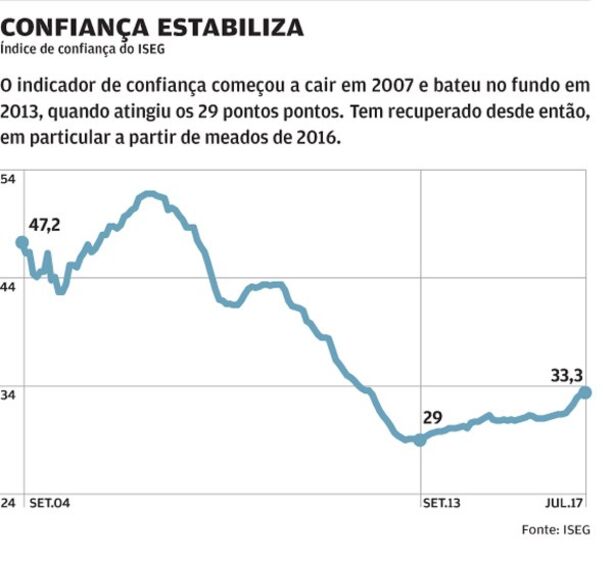 O índice de confiança do ISEG é produzido há mais de uma década. Neste período, as expectativas sobre o desempenho económico de Portugal caíram a pique desde meados de 2007, quanto atingiu um máximo de 51,8 pontos.