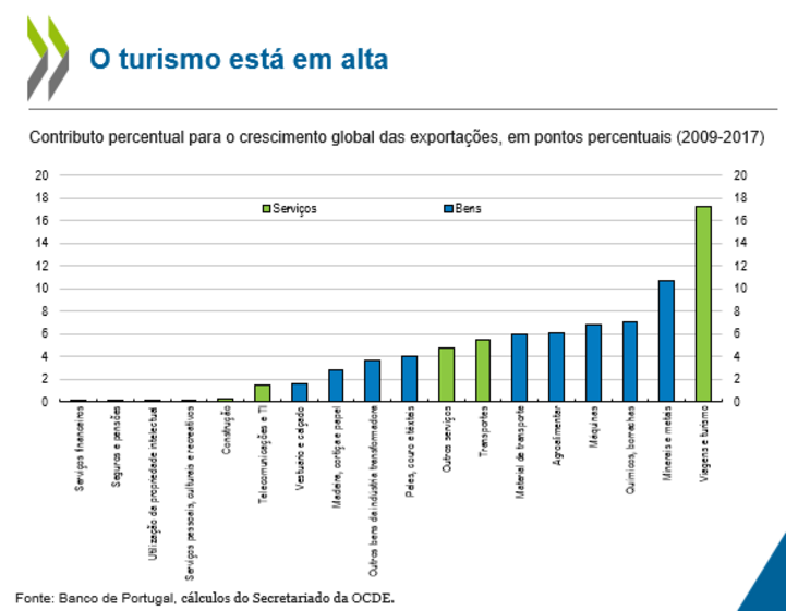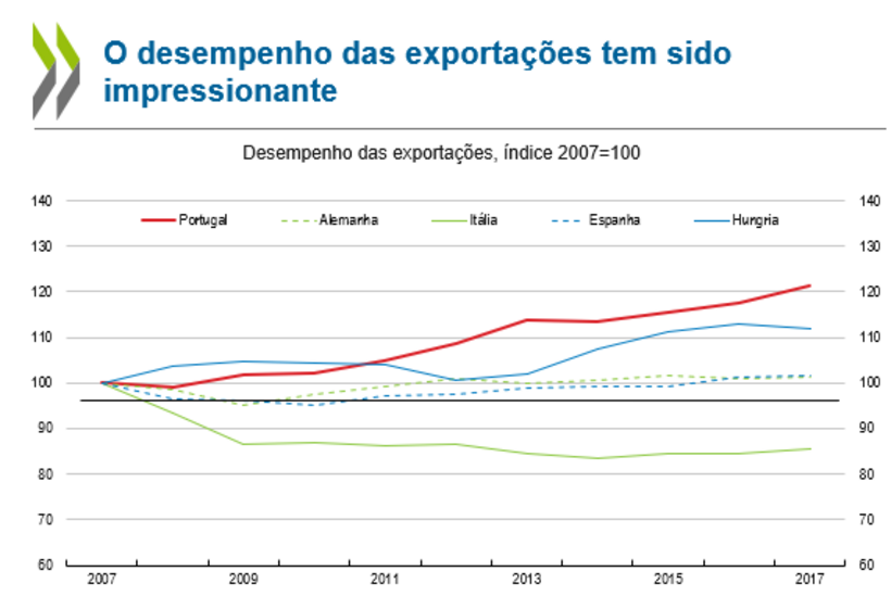 No entanto, tal como já tinha demonstrado um estudo do Banco de Portugal, a Organização argumenta que a economia portuguesa "poderá orientar-se ainda mais para o exterior". Esta conclusão surge da análise do peso das exportações no PIB, que ainda está aquém de países como a Hungria, a República Checa e a Bélgica.