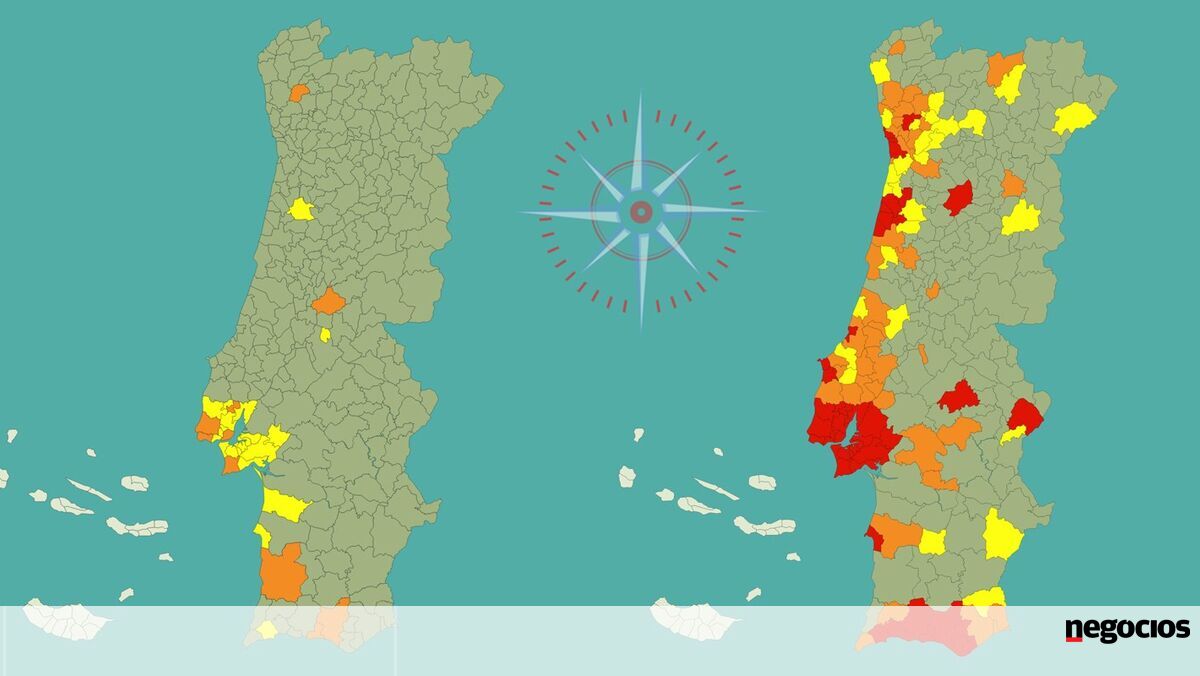 A 15 de junho Portugal não tinha um único concelho em risco muito elevado e os municípios em risco elevado eram 10. A nova fase do desconfinamento estava à vista. Um mês mais tarde são 47 os territórios em risco muito elevado e 43 em risco elevado. Veja nos mapas como evoluiu a pandemia em cada concelho neste mês.