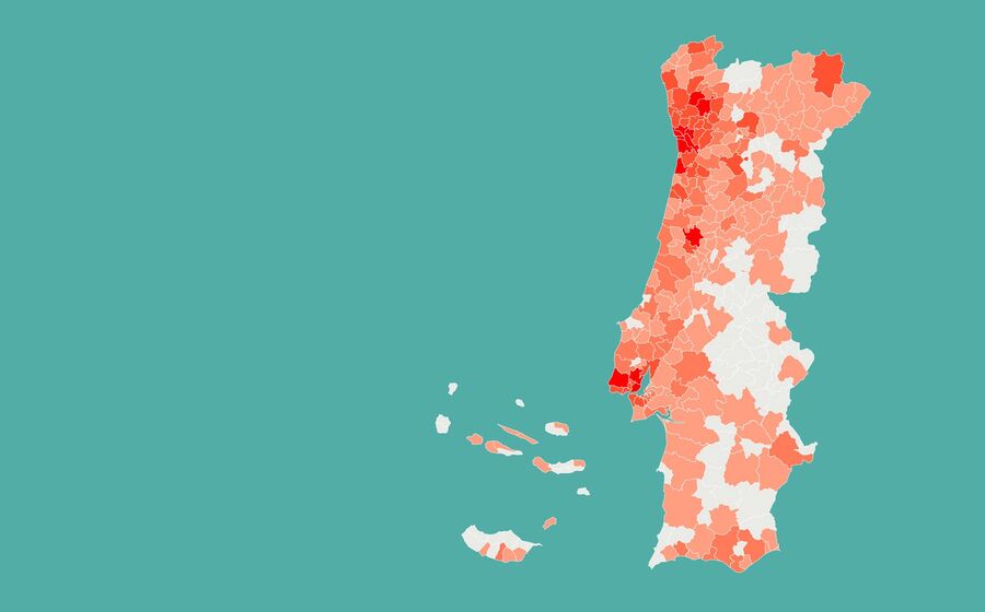 Desta forma, são agora 11 os concelhos acima das cinco centenas de casos positivos, sendo que seis desses municípios contabilizam já acima de um milhar de infetados, ordenados da seguinte forma: Lisboa (1.737), Vila Nova de Gaia (1.455), Porto (1.303), Matosinhos (1.207), Braga (1.152) e Gondomar (1.048).