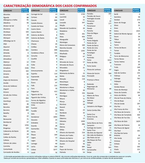 Segundo o boletim diário da DGS, há 815 mortos no Norte (mais de metade do total), 453 na região de Lisboa e Vale do Tejo, 248 no Centro e 15 no Algarve. Os Açores registam 15 óbitos, o Alentejo tem 3 óbitos e a Madeira continua sem vítimas mortais a lamentar.