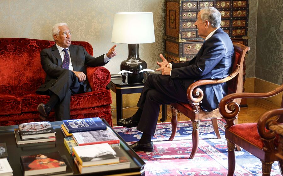 À chegada ao Palácio de Belém, em Lisboa, António Costa foi recebido pelo chefe de Estado na Sala das Bicas, perante a comunicação social.