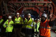Na presença do ministro do Ambiente e da Ação Climática, Duarte Cordeiro, do secretário de Estado da Mobilidade Urbana, Jorge Delgado, e do presidente do Metro de Lisboa, Vitor Domingues dos Santos, as máquinas perfuraram a parede que ainda dividia o túnel entre as duas futuras estações.