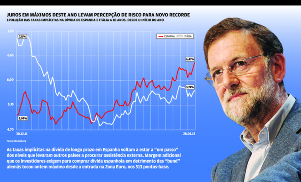 Espanha enfrenta uma pressão cada vez mais intensa nos mercados, fruto da intervenção do Estado no Bankia, que envolve montantes que superaram até as estimativas mais pessimistas. Essa é a justificação que os analistas encontram para que o prémio de risco de Espanha continue a bater recordes. Não é essa, no entanto, a visão do Governo. "A Europa tem de eliminar as dúvidas sobre o seu futuro", avisa Mariano Rajoy, enquanto afasta a possibilidade de um pacote de resgate para a banca e aplaude a contenção orçamental das províncias.
