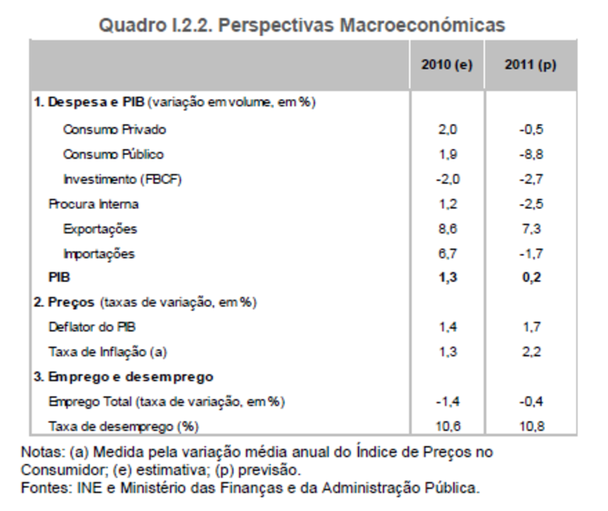“Por sua vez, a quebra de todas as componentes da procura interna reflectir-se-á na contracção das importações, contribuindo para uma redução do défice da balança comercial e, consequentemente das necessidades de financiamento da economia, em 2011.