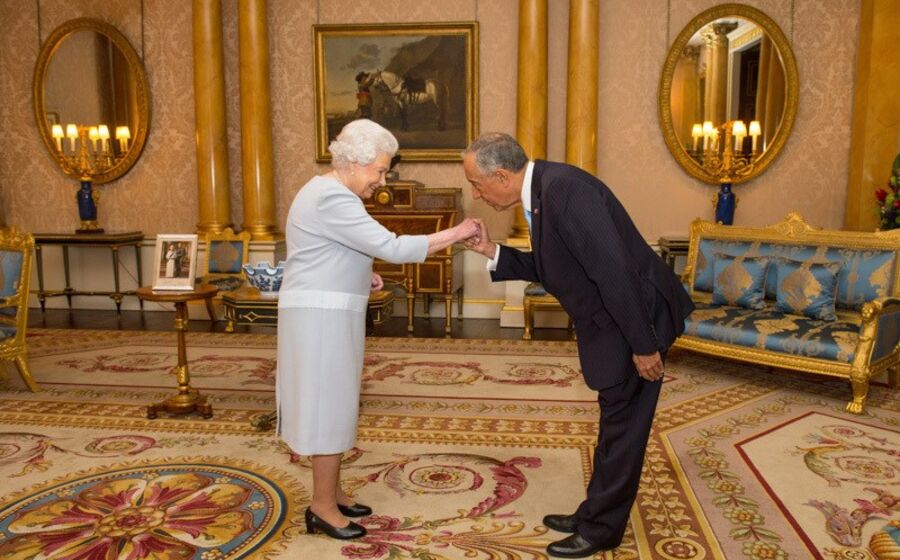 A breve troca de palavras entre o chefe de Estado português e a rainha, registada em vídeo disponibilizado pela Presidência da República, aconteceu no início do encontro pessoal dos dois chefes de Estado dos países com a mais antiga aliança política, que remonta a 1386.