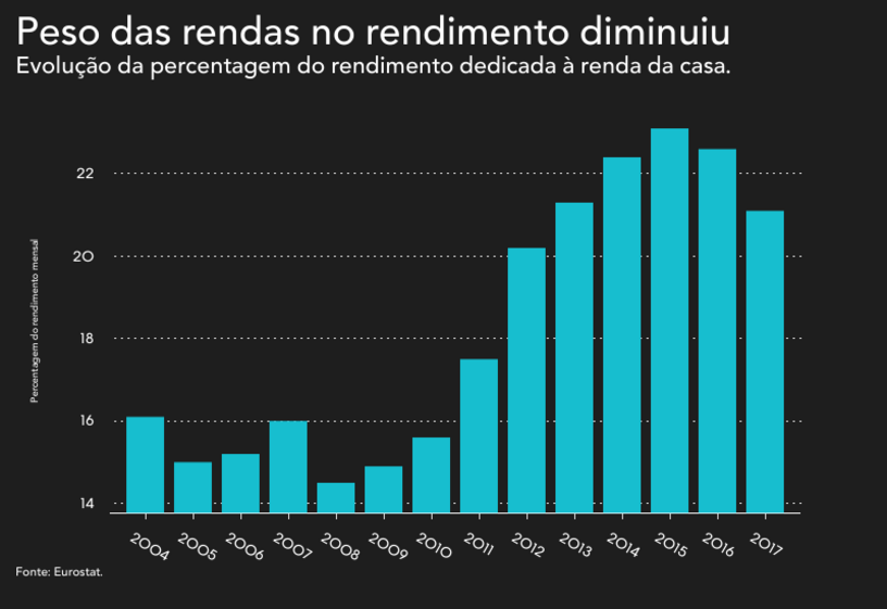 Os dados do Eurostat não permitem perceber o porquê desta diminuição. Os dados do Instituto Nacional de Estatística (INE) mostram como as rendas têm vindo a aumentar nos últimos anos. Por outro lado, os salários têm estado a subir, mas ainda de forma gradual.