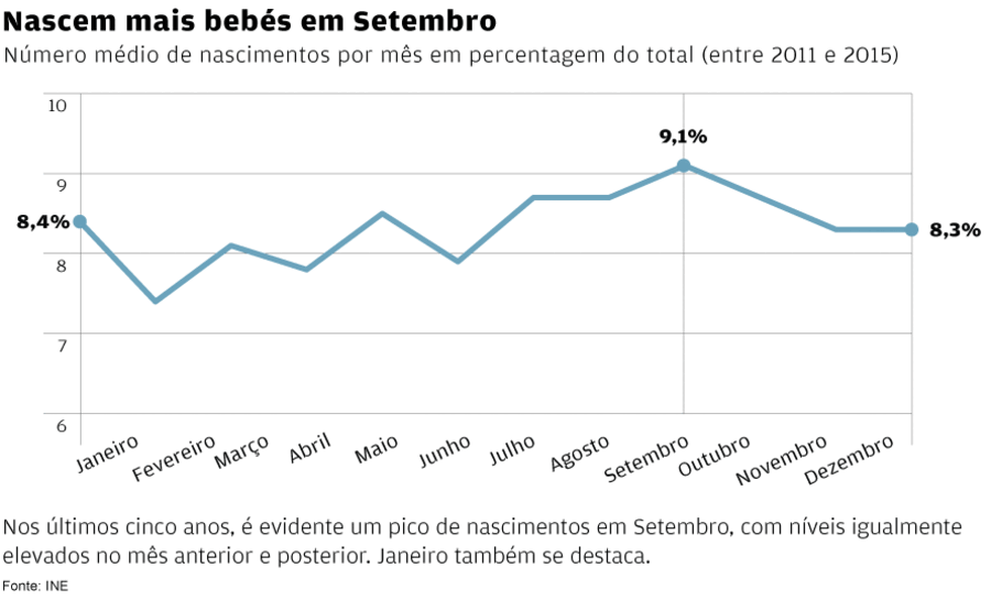 Há décadas que os académicos constataram uma forte sazonalidade dos nascimentos. E embora haja particularidades em cada região, a sazonalidade é incontornável em todas as populações do mundo. Ou seja, há sempre meses (não necessariamente Setembro) que registam um número de nascimento sistematicamente superior ao dos restantes.