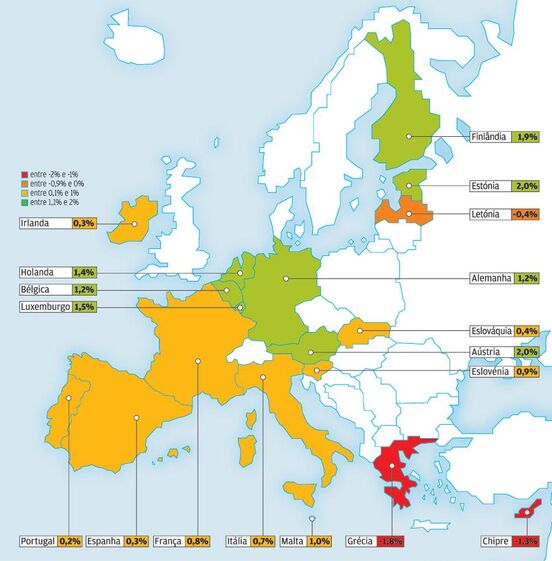 A inflação caiu na Zona Euro na segunda metade de 2013 e teima em manter-se baixa por toda a região. A periferia europeia é a mais afectada, com a Grécia e Chipre a registarem mesmo deflação.
