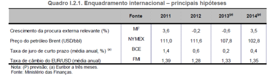 “Antecipa-se a manutenção das taxas de juro de curto prazo num nível baixo, bem como uma diminuição do preço do petróleo após a subida verificada na segunda metade de 2013, e uma ligeira depreciação do euro face ao dólar”, refere o Relatório do OE para 2014.