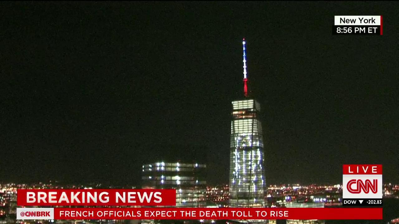 A CNN, por seu lado, reportou que a Torre da Liberdade ("Freedom Tower"), situada no local do novo World Trade Center, em Nova Iorque, ficou iluminada com as cores da bandeira francesa.