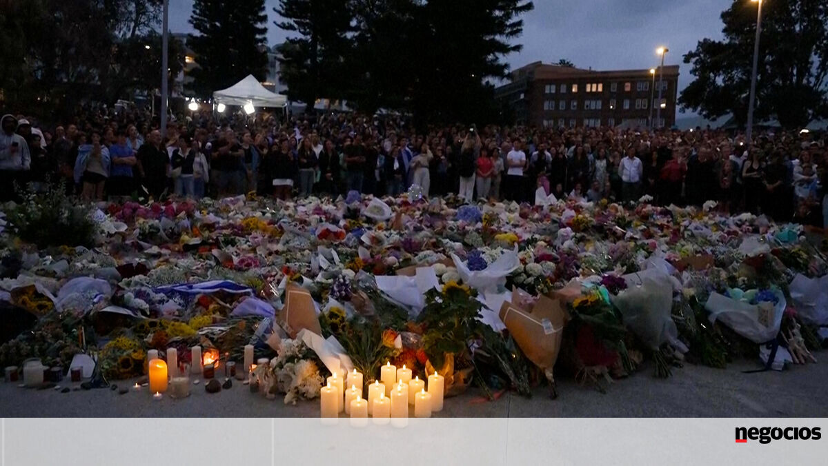 Uma multidão reuniu-se, esta segunda-feira, na praia de Bondi, na Austrália, com flores e velas, para homenagear as 15 vítimas mortais do tiroteio que ocorreu este domingo, durante as celebrações do Hanukkah.