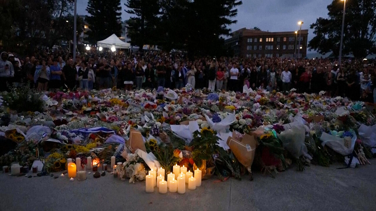 Multidão presta homenagem às vítimas do tiroteio na praia de Bondi na Austrália
