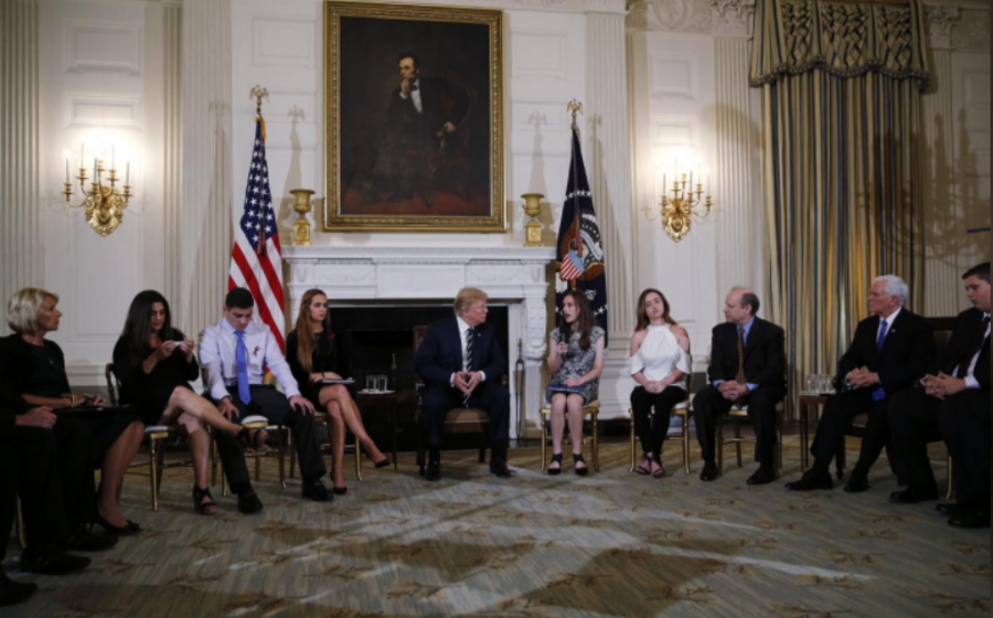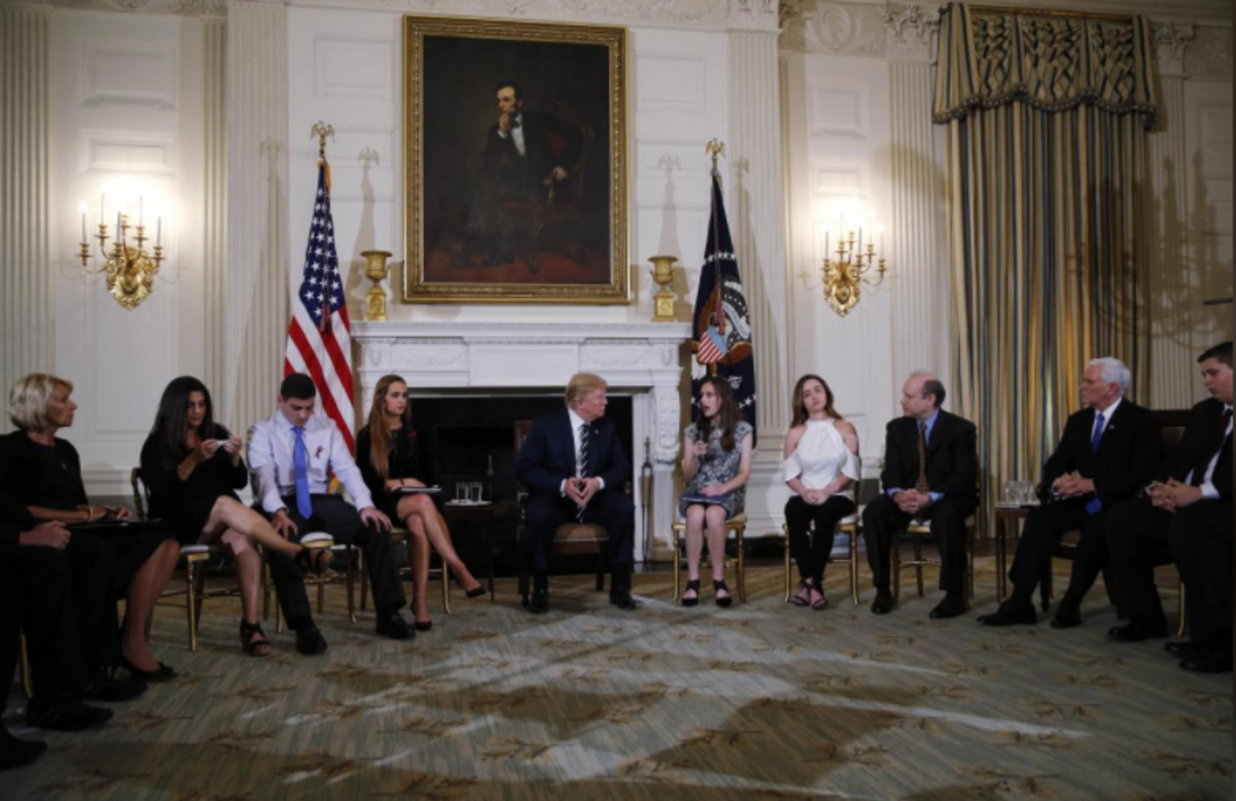 Donald Trump esteve hoje reunido com alunos, pais e professores, nomeadamente sobreviventes do tiroteio de dia 14 de Fevereiro no liceu Stoneman Douglas, em Parkland (Florida), para debater o tema da violência com armas nas escolas.