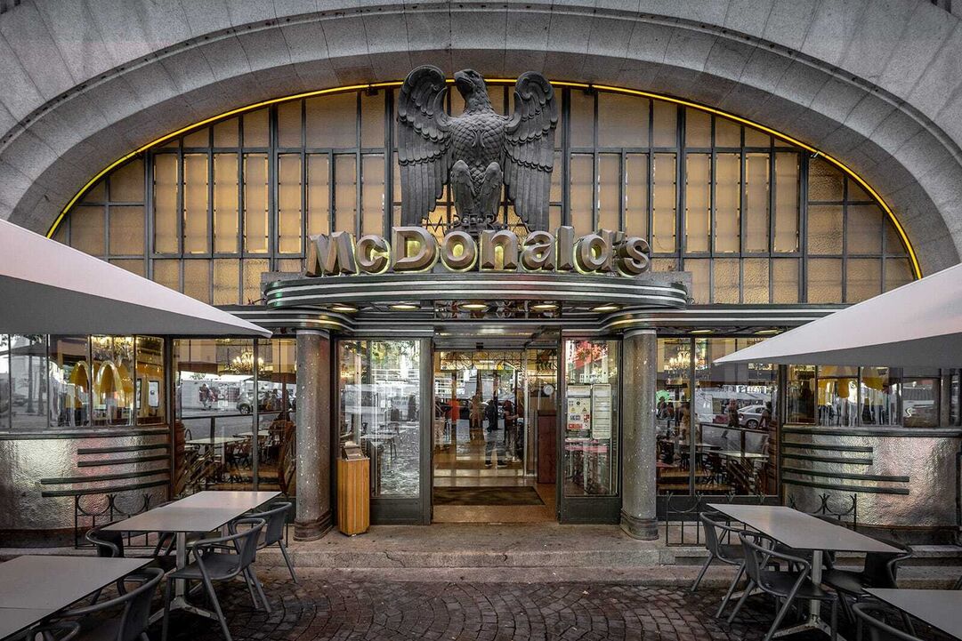 “Quando se entra, repara-se logo nos vários elementos do estilo Art Deco (pensem por exemplo no estilo do Empire State Building): os frisos ornamentados ao longo do teto, os lustres de cristal e, sobretudo, o enorme vitral atrás do balcão”, descrevia o jornalista, realçando os enormes candelabros de cristal que “fazem um contraste gritante com o que geralmente se encontra no McDonald’s”.