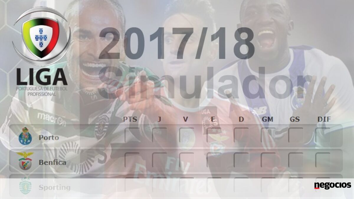 O Negócios publica o habitual simulador para que possa colocar os seus prognósticos para todos os jogos que envolvem os três grandes até ao final do campeonato.
