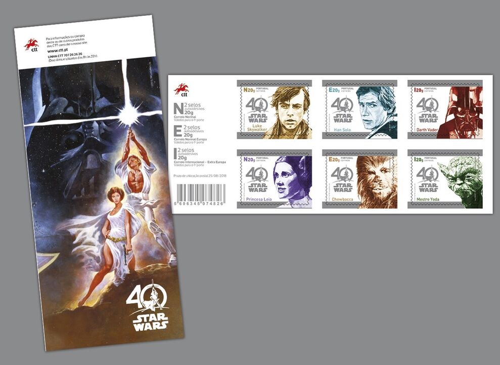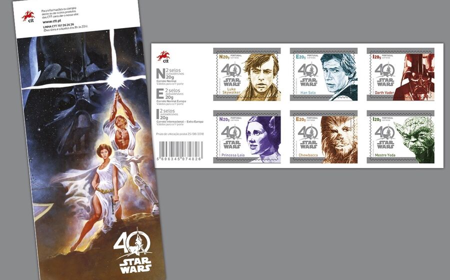 OS CTT lançaram uma série de selos para celebrar os 40 anos da Guerra das Estrelas. Esta emissão filatélica vai contar com várias personagens da saga Star Wars, como a Princesa Leia, Luke Skywalker, Han Solo, Chewbacca, Darth Vader e Mestre Yoda.