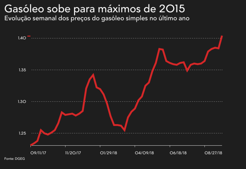 (Correcção: O gasóleo sobe para máximos de 2013 e não de 2015 como inicialmente foi referido)