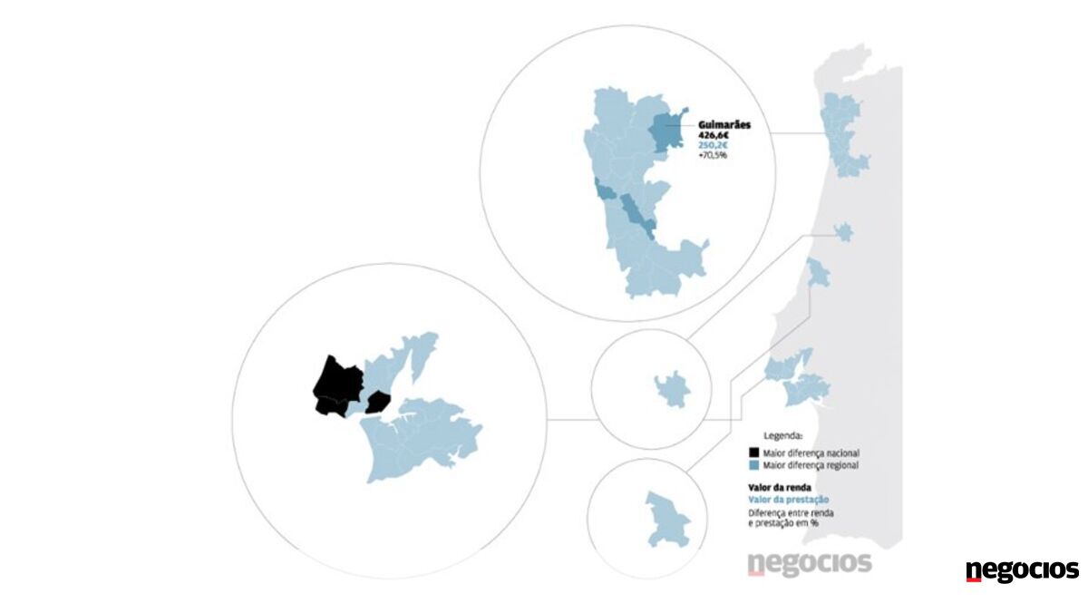 O Negócios cruzou os dados das rendas divulgados pela Confidencial Imobiliário/LardoceLar.com com os dados da avaliação bancária publicados pelo INE. Foi considerado um imóvel com 100 metros quadrados e, no caso do crédito, foi tido em conta um financiamento a 30 anos de 80% do valor da avaliação, com "spread" de 1,90% (o melhor possível nas simulações efectuadas e que inclui a subscrição de alguns produtos), indexado à Euribor a 12 meses.
