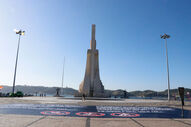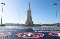 Uma lona preta está desde o nascer do sol a tapar a Rosa-dos-ventos, que ornamenta o terreiro de acesso ao Padrão dos Descobrimentos. A medida pretende chamar a atenção para o impacto que as bicicletas, skates, patins, trotinetes e outros veículos estão a ter naquela obra, inaugurada em 5 de agosto de 1960.