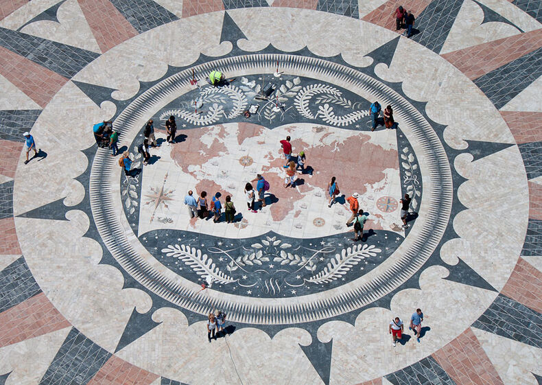 Em Lisboa a arte e o património também estão no chão. Um dos mais belos exemplos disso é a Rosa-dos-Ventos, em frente ao Padrão dos Descobrimentos. Mas a obra de Cristino da Silva, executada em cantaria de calcário liós negro e vermelho, está a ficar degradada por causa das bicicletas, skates, patins, trotinetes e outros veículos que sobre ela circulam, apesar de ser proibido.