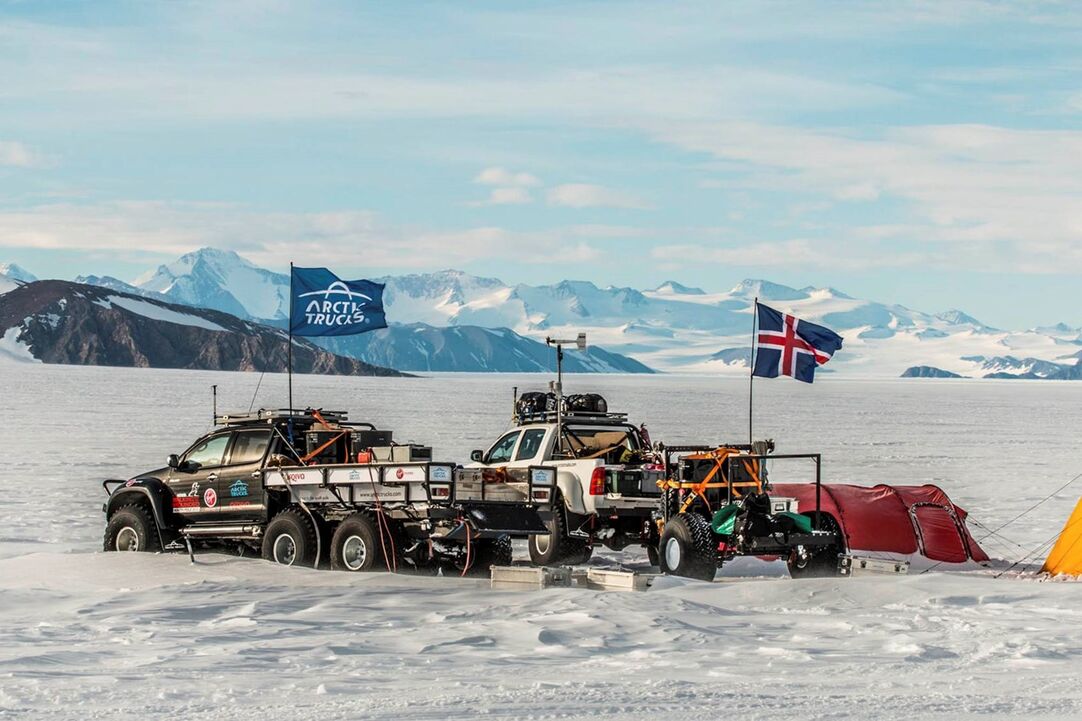 Os veículos adaptados ao polo — uma frota de 19 veículos Toyota Hilux reequipados e abastecidos com um combustível especial que não congela — são da alçada da Arctic Trucks, uma companhia que organizou viagens para a Top Gear e a realeza britânica (o príncipe Harry usou-a na sua viagem de caridade ao Polo Sul em 2013 pela Walking With the Wounded).