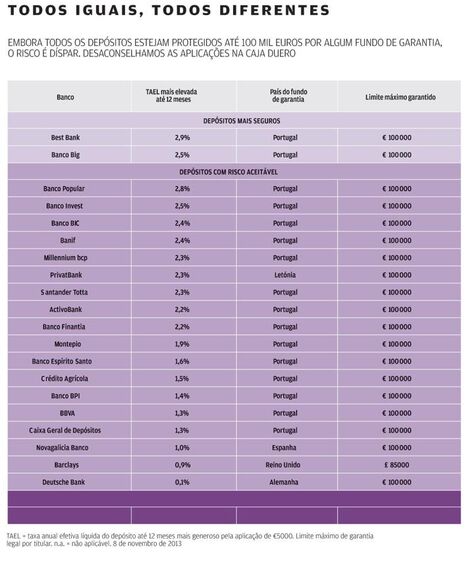 Porém, há bancos estrangeiros a operar em Portugal, cujos sistemas de garantia de depósitos são diferentes dos portugueses. É o caso dos depósitos constituídos no Barclays, que beneficiam da garantia de reembolso prestada por um fundo britânico, no Deutsche Bank, abrangido pelo sistema alemão, e no PrivatBank, que participa no da Letónia. As instituições espanholas Caja Duero e Novagalicia Banco fazem parte de dois sistemas espanhóis de proteção diferentes. Graças às regras europeias, todos os depósitos nestes bancos estrangeiros estão também garantidos até 100 mil euros. No Barclays, a proteção é até 85 mil libras por titular, o equivalente acerca de 101 mil euros. Embora o limite de proteção seja o mesmo, na prática, as distâncias podem dificultar a resolução e, em rigor, a segurança pode não ser a mesma. Antes de fazer o depósito leia a Ficha de Informação Normalizada que o banco tem de lhe entregar. Tenha atenção à garantia do capital e à possibilidade de mobilização antecipada e respetiva penalização no rendimento.