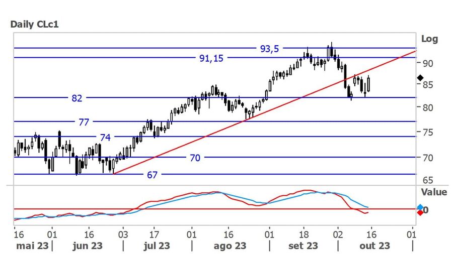 O petróleo apresentou uma semana volátil, ao ter começado a mesma a ressaltar do seu suporte nos $82 para níveis acima dos $86, mas depois retornado a recuar até perto do suporte mencionado. No último dia da semana, voltou a valorizar de volta para níveis perto dos $86.