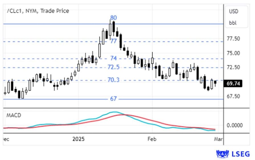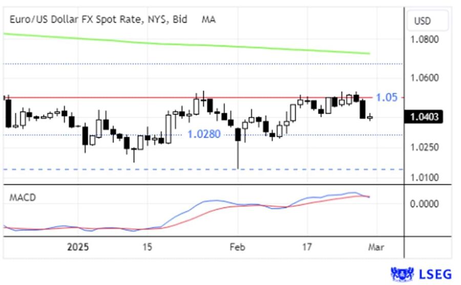 Donald Trump, Presidente dos EUA, afirmou que as tarifas de 25% sobre produtos mexicanos e canadianos irão entrar em vigor a 4 de março tal como previsto porque, alega, continuam a entrar estupefacientes nos EUA provenientes desses países. Trump acrescentou que será imposta uma tarifa adicional de 10% sobre produtos chineses nesse dia - para além dos 10% implementados a 4 de fevereiro e outras tarifas que já existiam. O mercado antecipava que as tarifas sobre o México e o Canadá pudessem ser adiadas para inícios de abril. Funcionários da administração Trump indicaram que o prazo de abril é referente às anteriormente anunciadas "tarifas recíprocas". Quanto à ameaça recente de Trump sobre a imposição de tarifas de 25% à União Europeia, não houve mais certezas ou detalhes.