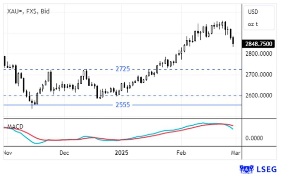 O preço do ouro iniciou a semana a renovar máximos históricos nos $2956/onça, mas depois apresentou 4 sessões consecutivas de perdas, ao ponto de, na sexta-feira, renovar mínimos de mais de 3 semanas perto dos $2830/barril.