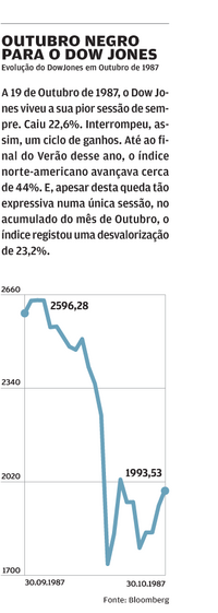 Já passaram três décadas, mas 19 de Outubro de 1987 continua a ser a sessão mais negra dos mercados accionistas norte-americanos. Tal como actualmente, as acções dos EUA atingiam recordes sucessivos.