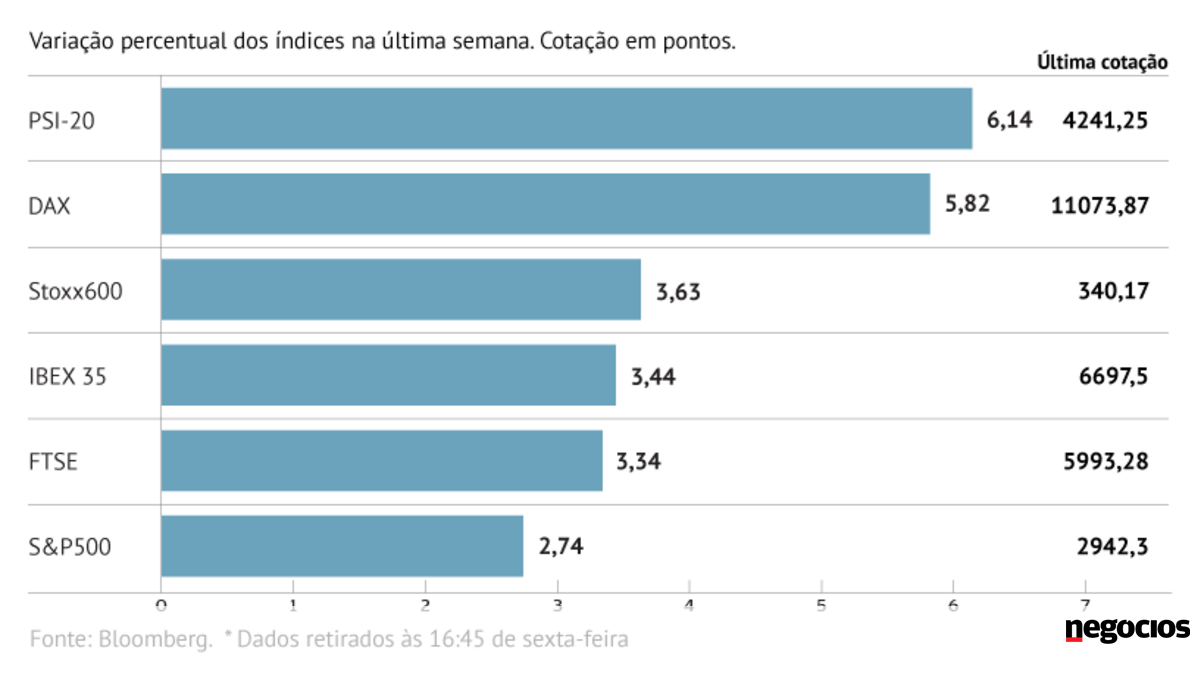 As bolsas europeias ganharam terreno na semana, com os principais índices de Wall Street a seguirem a mesma tendência.