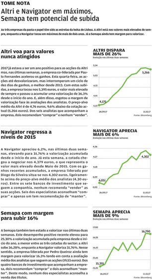 A Altri desceu, esta quarta-feira, pondo termo a um ciclo de 10 sessões consecutivas em terreno positivo. Em duas semanas, a empresa co-liderada por Paulo Fernandes somou 26,13% e chegou a negociar no valor mais elevado de sempre, nos 5,395 euros. No mesmo período, a Navigator valorizou 6,2% e está a negociar em máximos de Maio de 2015. Já a Semapa avançou 9,3%.