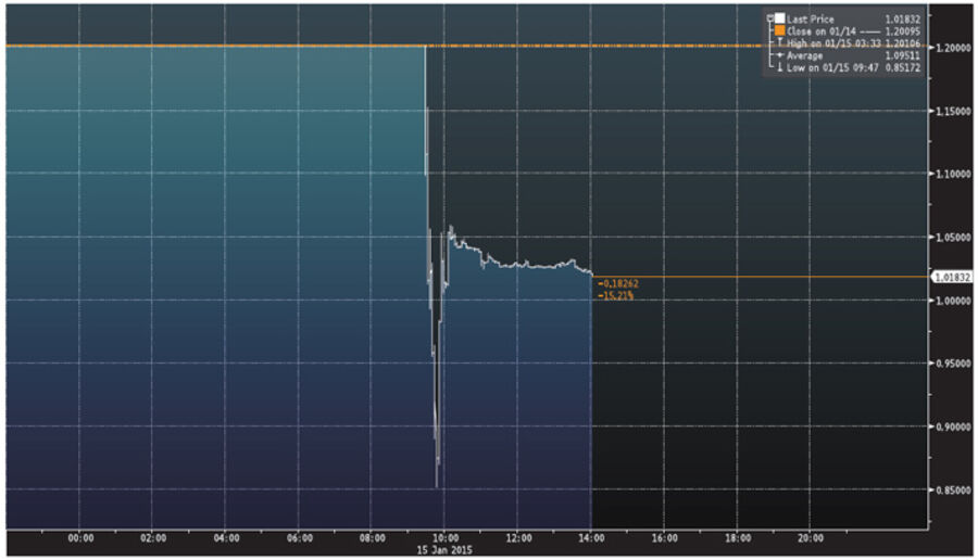 Com a queda do euro cada vez mais forte, a pressão sobre o franco suíço era cada vez maior, o que obrigava a uma forte intervenção do banco central no mercado para controlar o valor da moeda.