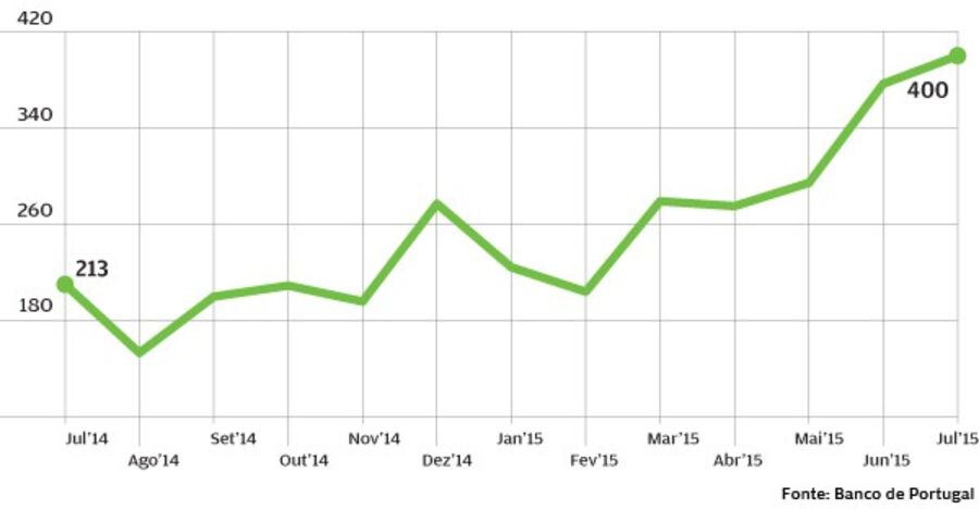 Para a recuperação do sector imobiliário tem contribuído a abertura da "torneira" do crédito à habitação. Os bancos têm vindo a apostar novamente neste produto e concederam mais dinheiro para a compra de casa. Em Julho, as instituições financeiras emprestaram 400 milhões de euros para este segmento, de acordo com os dados do Banco de Portugal. Um montante que quase duplica os 213 milhões de euros concedidos em Julho de 2014. No acumulado do ano, o novo crédito já supera os dois mil milhões de euros, o que representa o valor mais elevado desde 2011, mas ainda longe dos valores de 2007, quando ascendia a 1,7 mil milhões de euros num só mês.