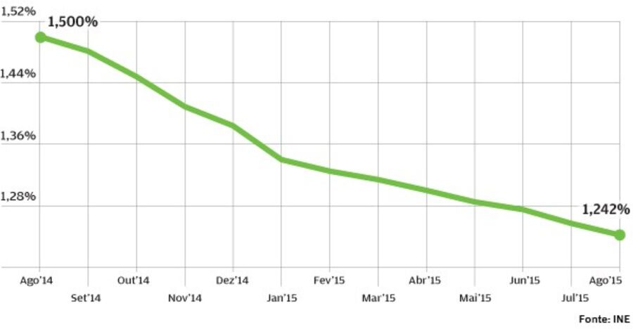 A recuperação do sector imobiliário não seria possível sem a redução das taxas de juro dos financiamentos. Com a Euribor em mínimos históricos, tanto a três como a seis meses, os encargos com o empréstimo para a compra de casa têm vindo a recuar. Os dados mais recentes do Instituto Nacional de Estatística (INE) revelam que, em Agosto, a taxa de júri implícita no crédito à habitação completou treze meses de quedas. Chegou aos 1,242%, o valor mais baixo desde que o INE começou a publicar estes dados, em 2009.