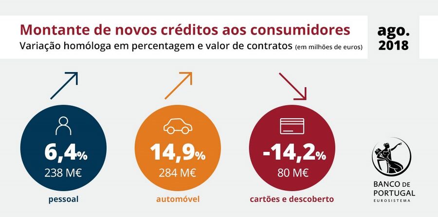 Se na habitação os novos créditos estão ainda abaixo do pico atingido em 2007 (os bancos emprestaram 6.503 milhões de euros para a compra de casa, nos primeiros oito meses do ano), no consumo o nível já é superior. As novas operações no crédito ao consumo ascenderam a 3.132 milhões de euros, entre Janeiro e Agosto de 2018, um valor acima dos 2.435 milhões de euros emprestados no mesmo período de 2007.