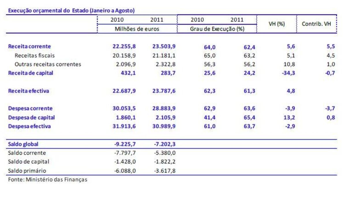 Execução Orçamental de Agosto