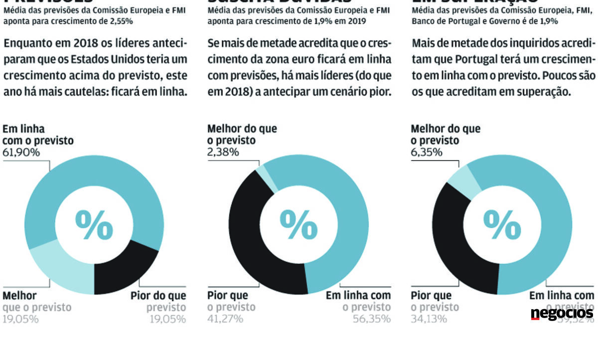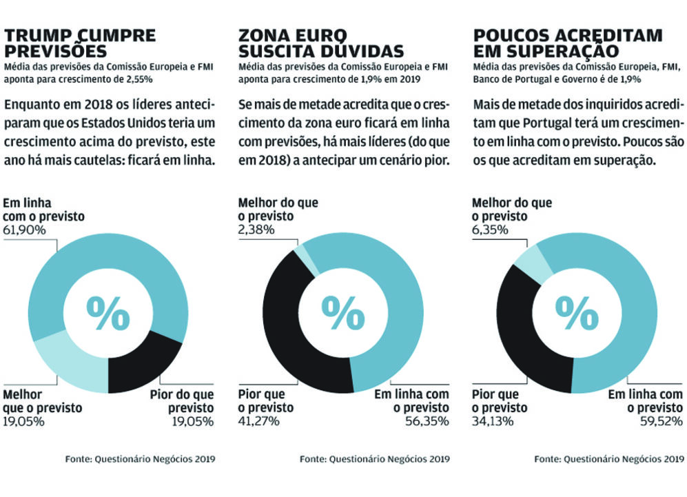 Crescimento em linha com as previsões, PS vencedor das eleições, mas sem maioria, e mais extrema-direita no Parlamento Europeu são algumas das previsões dos 126 líderes questionados pelo Negócios.