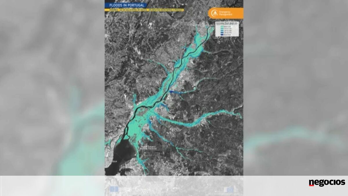 Imagem de satélite mostra impacto das inundações nas áreas junto ao Tejo