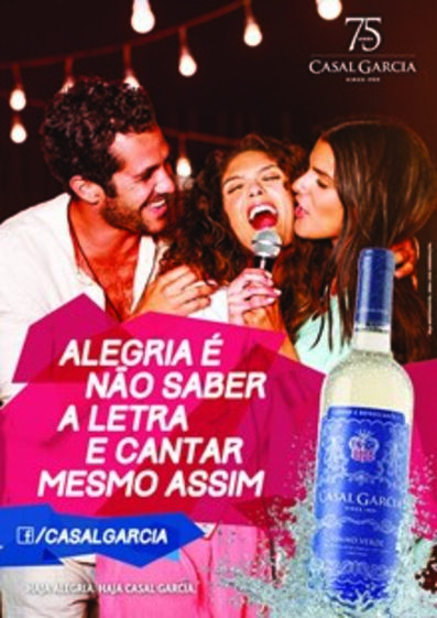 Admiro o histórico slogan do vinho verde Casal Garcia: "Haja alegria. Haja Casal Garcia."Ésimples. Despretensioso. Ressuma todas as qualidades formais de um slogan: curto, ritmado, rimado, sugestivo.
