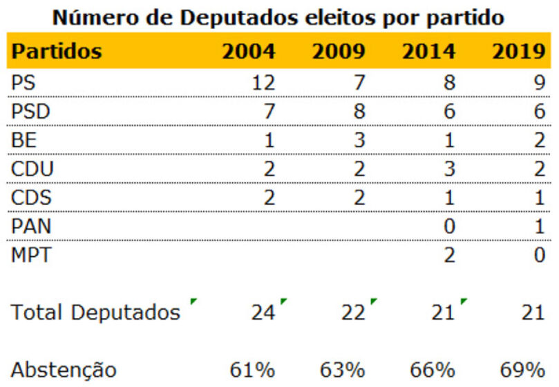 Quantos aos restantes partidos, eles oscilam numa banda que não foi quebrada nestas eleições: o PSD entre os 6 e os 8, o CDS entre os 2 e 1, a CDU que elege normalmente 2 deputados e por uma vez elegeu 3 desta vez ficou-se pelo seu número habitual de 2, o BE oscila entre 1 e 2. Os resultados destes partidos estão dentro do seu normal.
