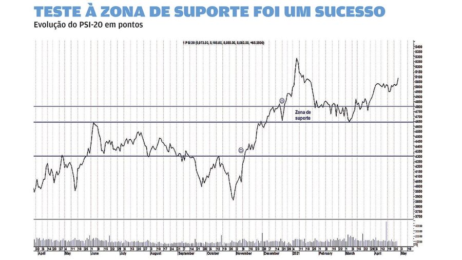 Por mais aborrecida que a bolsa portuguesa tenha estado nos últimos tempos, a verdade é que o reteste à zona de suporte do PSI-20 entre os 4.650 e os 4.800 pontos foi um sucesso, o que reforçou a importância desse suporte. Enquanto ele não for quebrado, os touros continuam a controlar o mercado accionista luso e a tendência continua a ser ascendente.