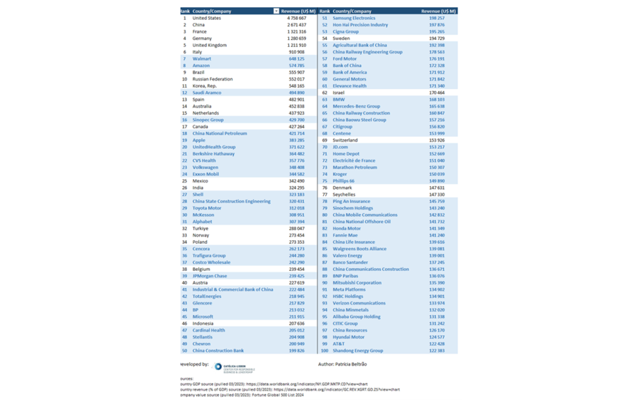 Esta evolução numérica revela uma tendência clara: ao longo da última década, o poder económico das empresas não só se consolidou, como também ultrapassou o da maioria dos Estados no que diz respeito à geração de receitas anuais. Empresas como a Walmart, a Amazon ou a Saudi Aramco geram mais receita do que o rendimento anual de países como Espanha, Brasil, Austrália, ou mesmo o Canadá e os Países Baixos. Isto posiciona as grandes corporações com um elevado poder de transformação do mundo, uma vez que detêm os recursos necessários para promover o desenvolvimento sustentável e a prosperidade das nossas sociedades.