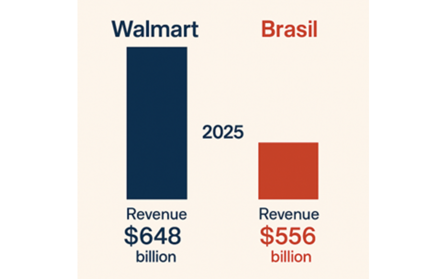 No setor do retalho, a Walmart merece também uma menção especial. Com uma receita anual de 648 mil milhões de dólares, a empresa supera as receitas governamentais de dezenas de países, incluindo o Brasil, a Rússia, a Áustria e Israel. O volume de negócios da Walmart não só a torna a maior retalhista do mundo, como também um ator económico à escala de nações desenvolvidas. O seu modelo de negócio afeta milhões de trabalhadores, fornecedores e consumidores, influenciando padrões de consumo, direitos laborais e emissões nas cadeias de abastecimento. Por isso, a forma como as empresas de retalho integram critérios ambientais e sociais nas suas operações é determinante para a promoção de cadeias de valor mais justas e resilientes e, consequentemente, para uma sociedade mais equilibrada.