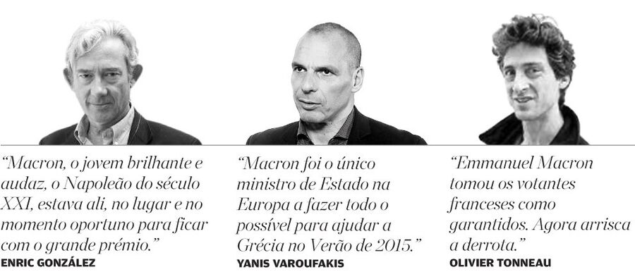 No L'Obs, o apoio a Macron vem de uma personalidade insuspeita: Yanis Varoufakis. Este escreve: "Há algo mais no meu apoio a Emmanuel Macron. [No seu mandato de ministro grego das Finanças] ele revelou um lado que poucos progressistas conhecem. Macron foi o único ministro de Estado na Europa a fazer todo o possível para ajudar a Grécia no Verão de 2015, quando a troika dos credores da Grécia e o governo de Berlim minavam as tentativas do nosso governo de esquerda recentemente eleito para libertar a Grécia do jugo da dívida." É uma boa forma de olhar novamente para a História. No Guardian, Olivier Tonneau afirma: "Emmanuel Macron tomou os votantes franceses como garantidos. Agora arrisca a derrota. A ascensão de Macron é típica da idade dos 'spin doctors': ilustra o seu poder e os seus limites. É surpreendente como alguém que inspirou (como secretário pessoal) e implementou (como ministro das Finanças) as políticas de François Hollande seja apresentado como algo radicalmente novo." Domingo se verá.