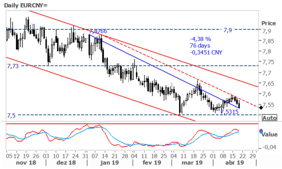 Eur/Cny deverá voltar a testar os 7.50 yuans